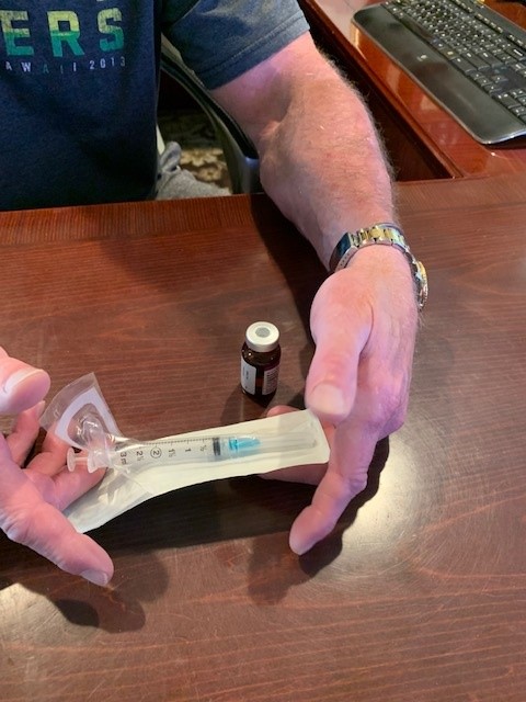 Take the syringe out of the packaging leaving the protective cap on until you are ready to draw the testosterone